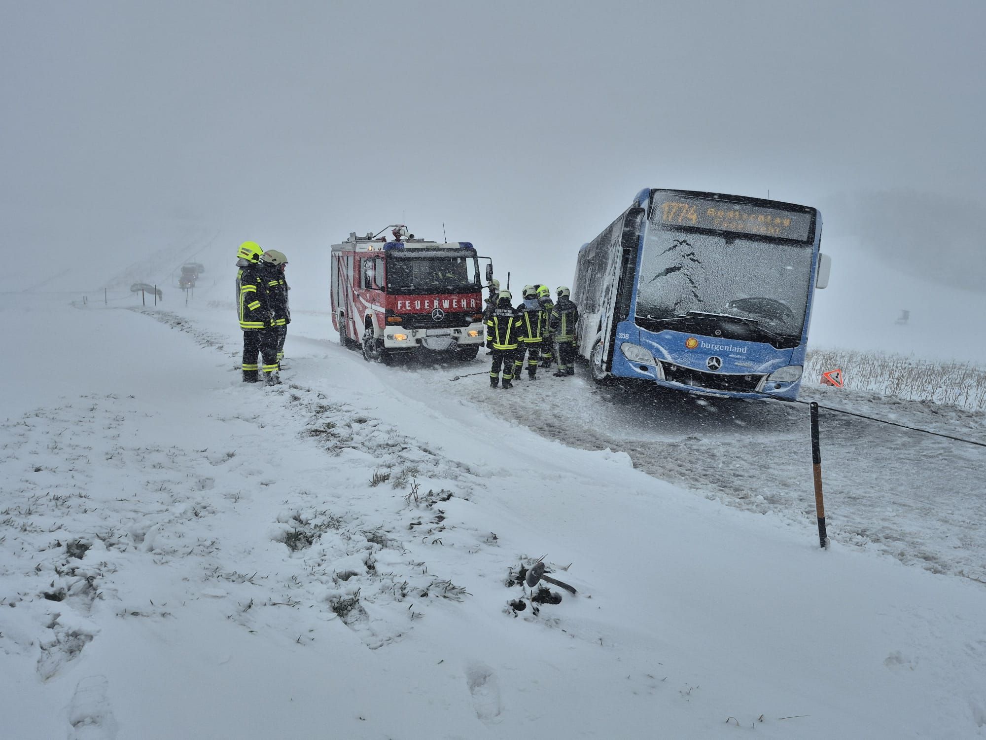 Autobus blieb auf L345 hängen – 3 Feuerwehren, bei sibirischen Wetterverhältnissen, im Einsatz!