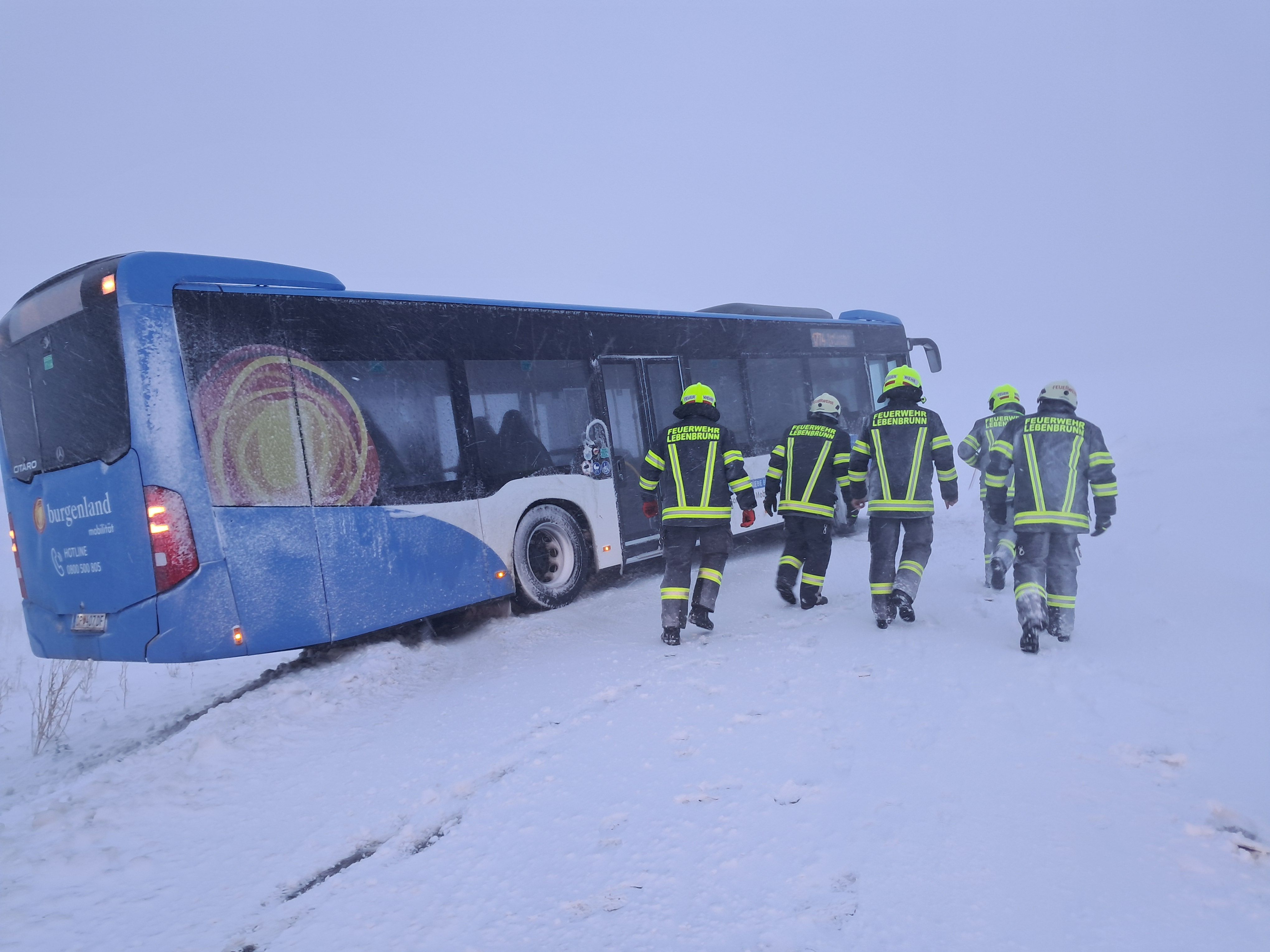 Um 06:31 Uhr wurde die Feuerwehr Lebenbrunn zu einer Fahrzeugbergung auf der L345 Richtung Kogl (Höhe Bodenfeld) alarmiert. Ein Schulbus blieb auf der schneeglatten Fahrbahn hängen und rutschte glücklicherweise nicht über die Böschung. Nach dem Eintreffen am Unfallort wurden die beiden unverletzten Fahrgäste/Schulkinder ins TLF-A bzw. anschließend ins Feuerwehrhaus Lebenbrunn gebracht und in die Obhut der Eltern übergeben.