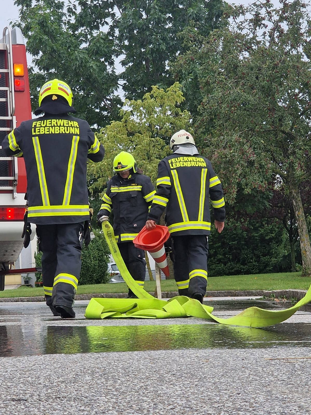Nach Abspielen des Alarmtextes rückte die Feuerwehr mit dem TLF-A und dem MTF aus. Erschwerender Umstand bei dieser Übung - welche von LM Michael Weber ausgearbeitet wurde – war, dass eine direkte Zufahrt zum Brandobjekt nicht möglich ist und sich in unmittelbarer Nähe mehrere landwirtschaftliche Gebäude befinden. Nach Erkundung der Lage durch Einsatzleiter OBI Stefan Weber erteilte dieser den Angriffsbefehl: